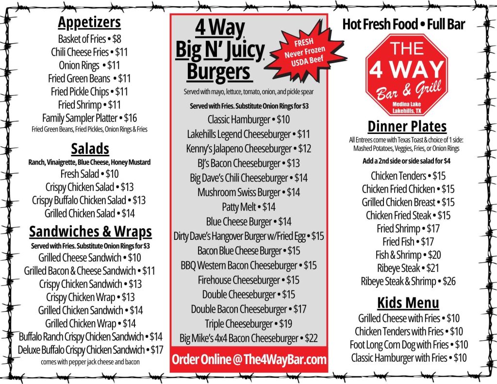 From burgers and fried pickles to shrimp and more, your cravings are waiting to be satisfied at the 4 Way Bar and Grill.
